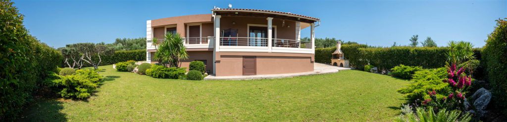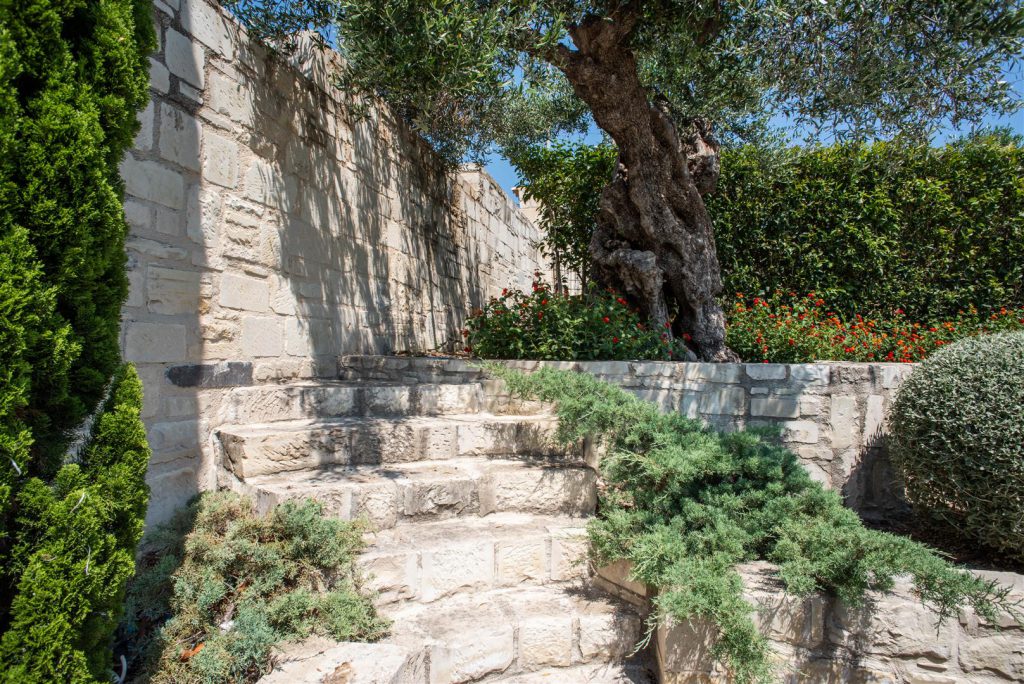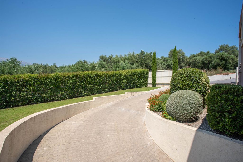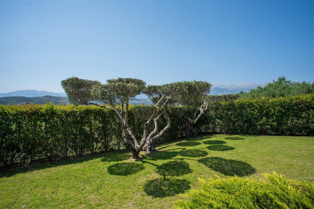 Το τμήμα του οικοπέδου στο οποίο είναι χτισμένο το σπίτι είναι πλήρως διαμορφωμένο με γκαζόν που περιβάλλει το σπίτι και είναι φυτεμένο με μερικά δέντρα, θάμνους και θάμνους. Το άλλο τμήμα του οικοπέδου διατηρείται ως έχει, φυτεμένο με ελιές και μερικά οπωροφόρα δέντρα.