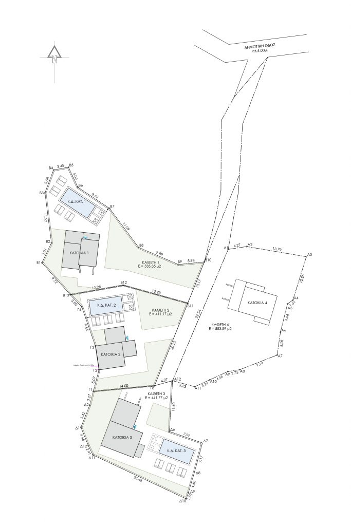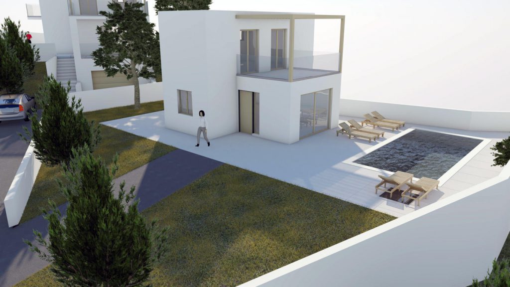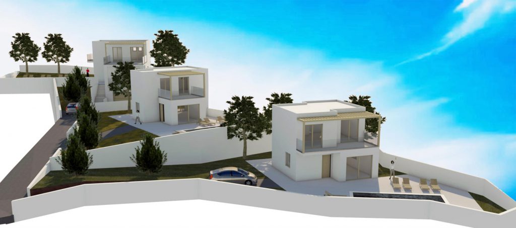 Στο γραφικό χωριό Κόκκινο Χωριό κατασκευάζουμε τρεις κατοικίες με πανοραμική θέα στη θάλασσα και την εξοχή.