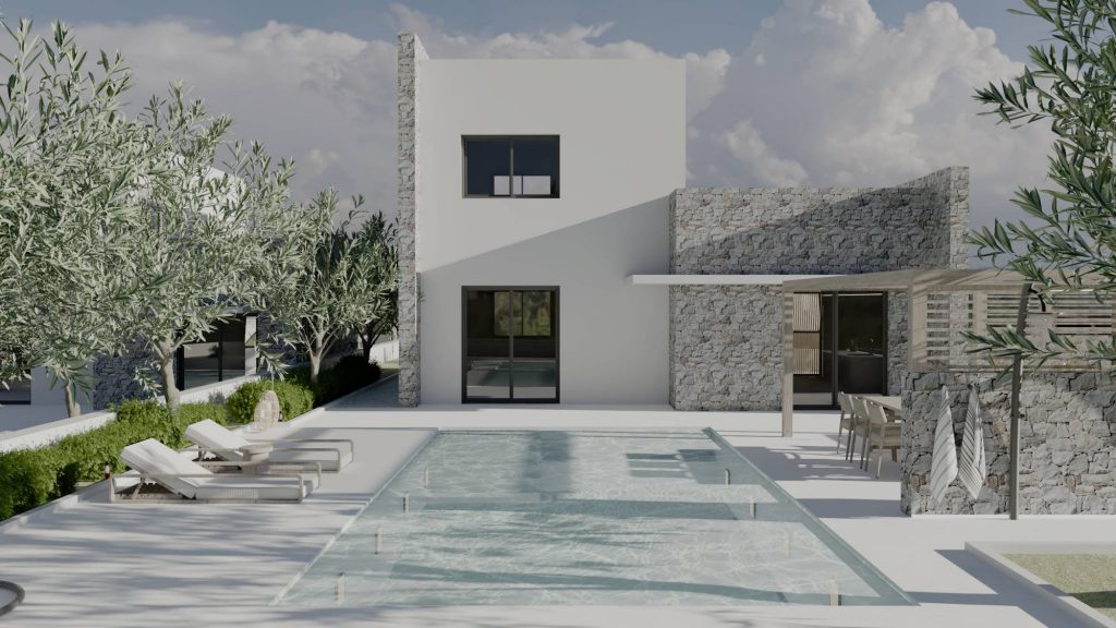 offers one exceptional home that seamlessly combine comfort, elegance, and convenience. The residence spans 130 m² and features three spacious bedrooms and three modern bathrooms,including an ensuite for added privacy. Built on a generous 670 m² plot, this property includes a 40m² pool, perfect for relaxing under the warm Cretan sun.This home is thoughtfully designed to maximize views of the stunning White Mountains,offering a scenic backdrop for both indoor and outdoor spaces. The village of Drapanos provides aserene setting, away from the busier parts of Crete, while being just a short 12-minute drive from pristine beaches where crystal-clear waters await.Whether you’re looking for a primary residence or a tranquil getaway, this project captures the essence of modern living within a traditional Cretan village setting. With close proximity to nature,the sea, and charming local amenities, these homes offer a unique opportunity to experience thebest of Cretan lifestyle in a peaceful, picturesque environment.