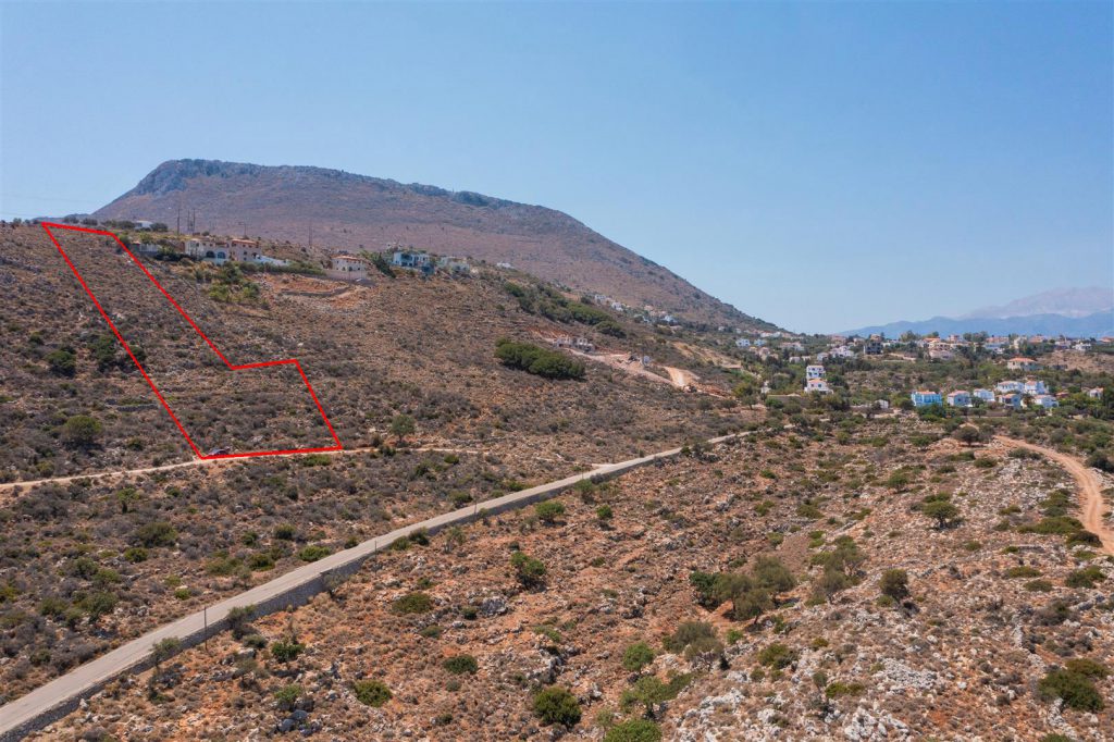 Grand terrain à vendre à la périphérie du village de Kokkino Chorio avec une vue imprenable sur la mer et les Montagnes Blanches !