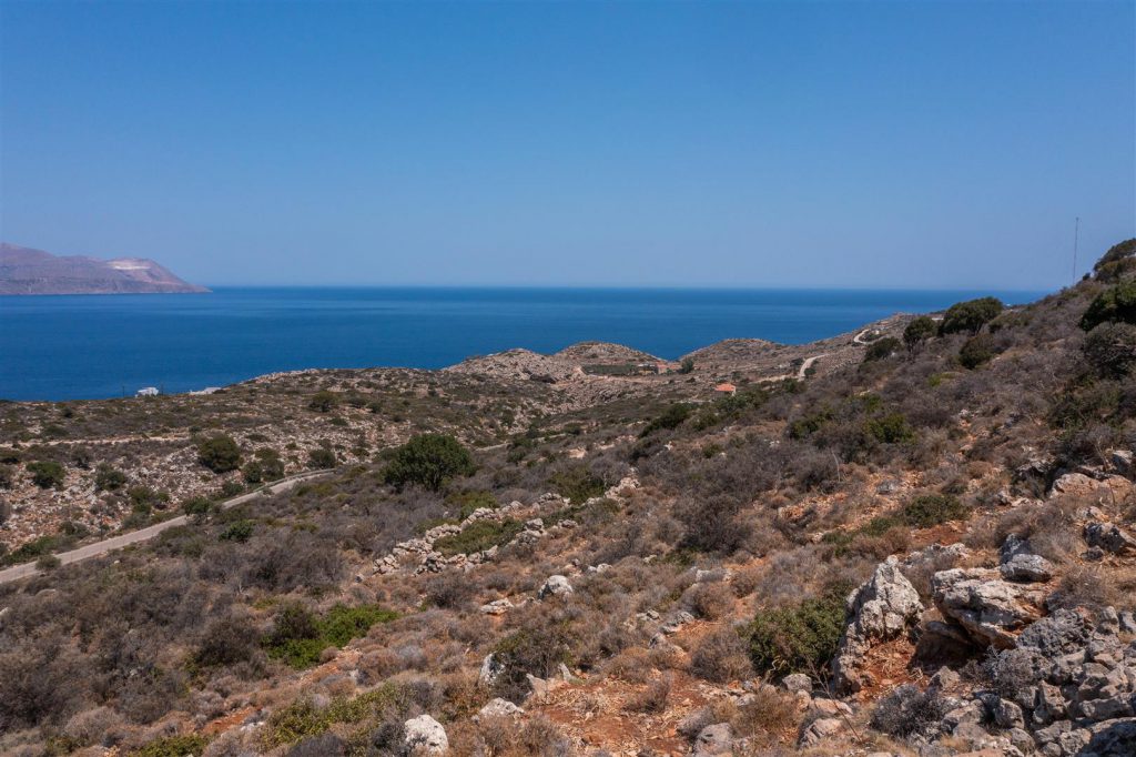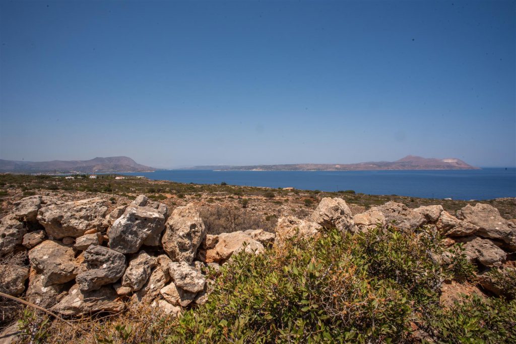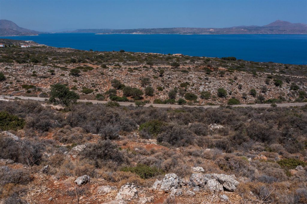 Orienté nord-ouest, le terrain bénéficie d’une vue incroyable sur la mer, le coucher du soleil, la montagne blanche et donne directement sur la baie de Souda ! Les vues sont visibles depuis n’importe quel point du terrain !