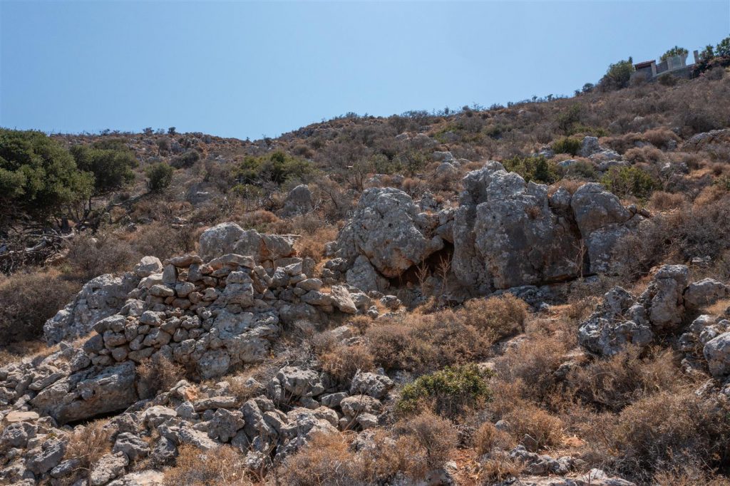 Ce terrain de 4,933,59m2 peut être construit jusqu’à 200m2 et a une pente qui garantit une vue imprenable. Le terrain est un peu rocheux et est couvert de buissons et d’arbustes. La forme est longue et étroite, part de la route d’accès et monte jusqu’au sommet de la montagne.