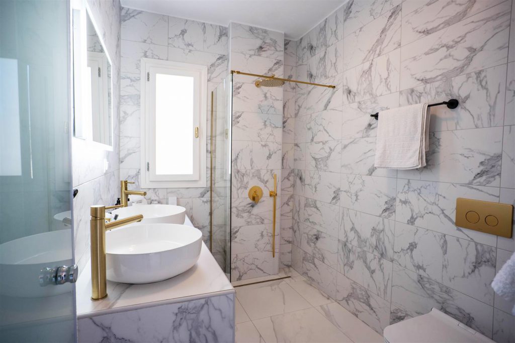 There is an external staircase leading from the ground floor garden/lounge area onto the very spacious first floor terrace where a Jacuzzi and a lounge are placed! The perfect spot to cool down on a hot summers day, while enjoying the surrounding village and sea views!