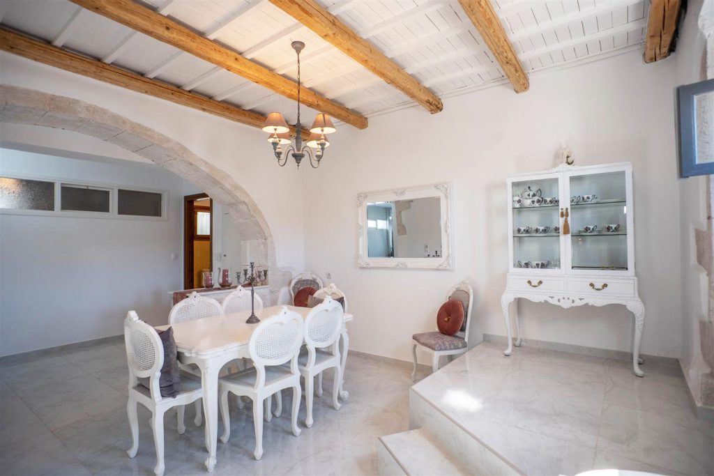 Another beautiful stone arch gives access to the dining room which has double doors leading onto the west side of the villa and directly onto the village road. There is also a smaller opening leading directly into the kitchen for easy access, to serve all your family and friends the traditional Greek cuisine!